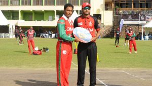 Oman won the toss and put Canada in to bat. The youthful opening partnership of Kumar and Adhihetty has been one of the discoveries of the tournament for Canada, and they were again effective, putting on 102 for the first wicket before Kumar was bowled for exactly 50 from 78 balls with eight fours. Dhaliwal made 13, but Adhihetty completed his 50. Rain resulted in a lengthy delay play with the score on 159/2 after 36.2 overs, Adhihetty on 79 and Pathirana 13. Play resumed, with the innings limited to 40 overs. Canada advanced to 176/3 but lost Adhihetty for 86 before rain intervened again. When play resumed again, Canada’s innings was deemed complete, and Oman had a target of 177 in 24 overs. The third over from Dhindsa featured a wide, two fours, two sixes and two wickets. Only 4.3 overs were possible before rain came again with Oman on 50/2 and the match was abandoned with no result.