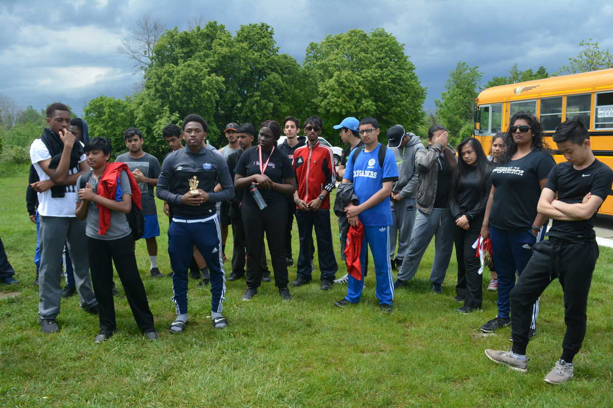The Secondary Schools final in the second annual Toronto Catholic District School Board (TCDSB) cricket championships ended prematurely as rain poured down from the heavens above on Tuesday May 30, 2017. The prospect of re-playing the final the next day, the tournament reserve day, seemed limited as more thunder, lightning and rain were likely so the decision was made to share the trophy between finalists Mary Ward Catholic Secondary School (CSS) and Monsignor Percy Johnson Catholic Secondary School.