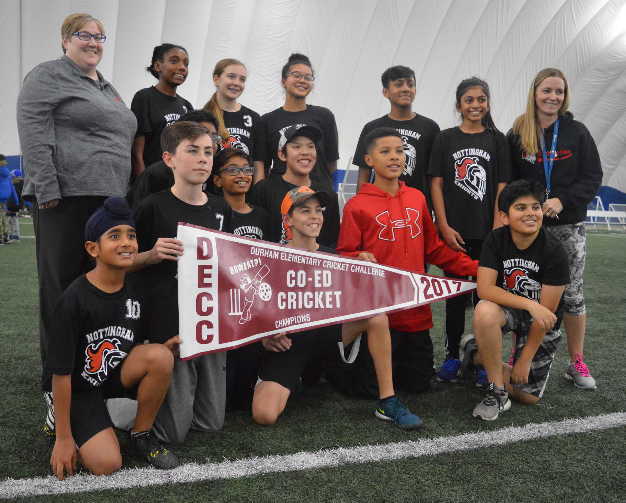 The 2017 Durham Elementary Schools Cricket Challenge was decided by a review of wickets lost after Nottingham Public School (PS) and Chris Hadfield PS each scored 71 runs from 10 overs in the final. Nottingham PS won thanks to taking 12 wickets in the final, twice as many as the 6 wickets Chris Hadfield captured.