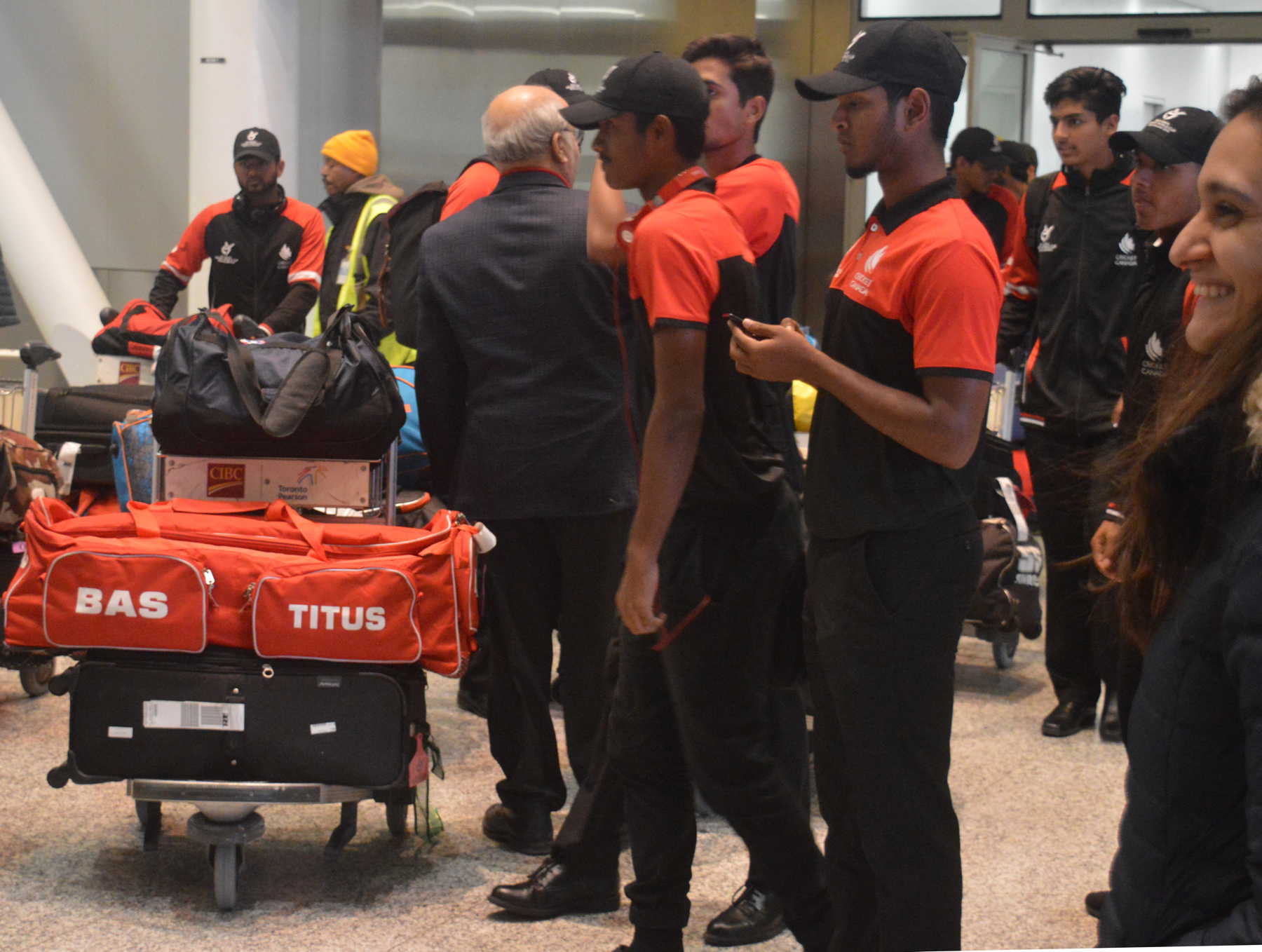The Canada Under-19 squad arrived back safely from the ICC Under-19 Cricket World Cup in New Zealand at Toronto’s Pearson International Airport on Tuesday evening (Jan 30, 2018). Family and friends greeted several of the players but for some of the squad a further flight is needed to return them to western parts of Canada.
