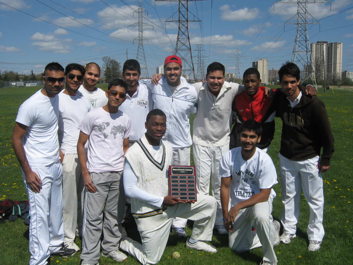 Cricket, the game of glorious uncertainties, certainly lived up to that assessment when chasing 38 runs proved to be a daunting task for the Emery batsmen. Captain Sahil Kesar was determined to take the shield and gave a fight to death effort. With pinpoint accuracy tournament MVP Michael Walton kept the runs down in the early overs and managed to shatter the stumps of opener Karan Bhatti before any stand could develop. His brother, proved to be just as accurate with his spin and use of flight, removing the stumps Japjeet Singh and Afaq Ansari. Not to be outdone by his younger brother, Patrick’s aggressive out fielding style caught him the tournament’s Best Fielding award. His batting contribution towards the overall Universities’ effort also garnered the Batting trophy. Unfortunately, due to tight and intelligent fielding, Emery could only muster 37 runs to tie the game….