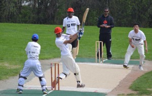 The sun shone for much of Monday (May 12, 2014) at Toronto’s G. Ross Lord Park as two of the four Toronto Boys High School groups began the path to the 2014 CIBC Trophy. North Albion Collegiate Institute (C.I.) won one group then beat Kipling C.I, the day’s other group winner. North Albion C.I. reached 70/3 from 8 overs then limited Kipling C.I. to 25/6 in 8 overs to win the day’s playoff.
