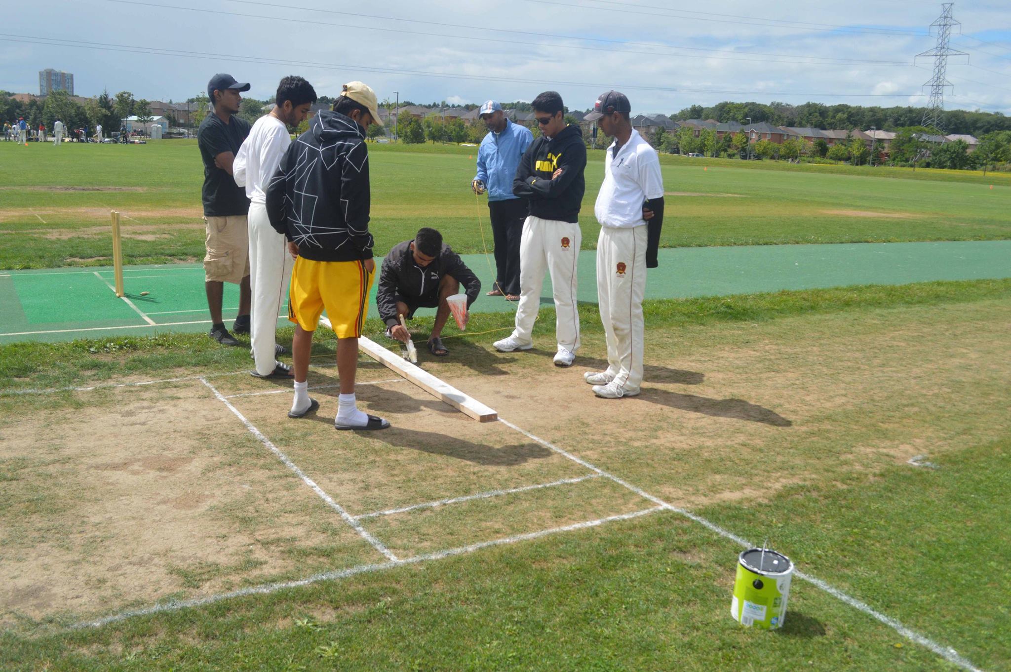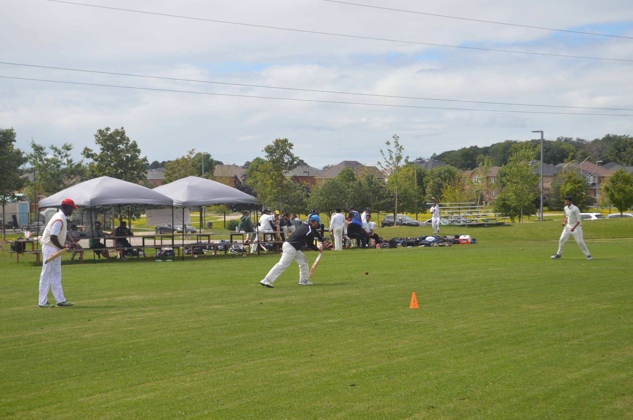 The ground where play took place is commonly called Iceland by the cricketing community; Iceland is really the name of the hockey complex to the north of the cricket ground. The address is given as 616 Driftcurrent Drive, Mississauga, on the Chauka tournament scoring setup. The sign for the park, for those entering on foot from the west says it is Red Brush Park.