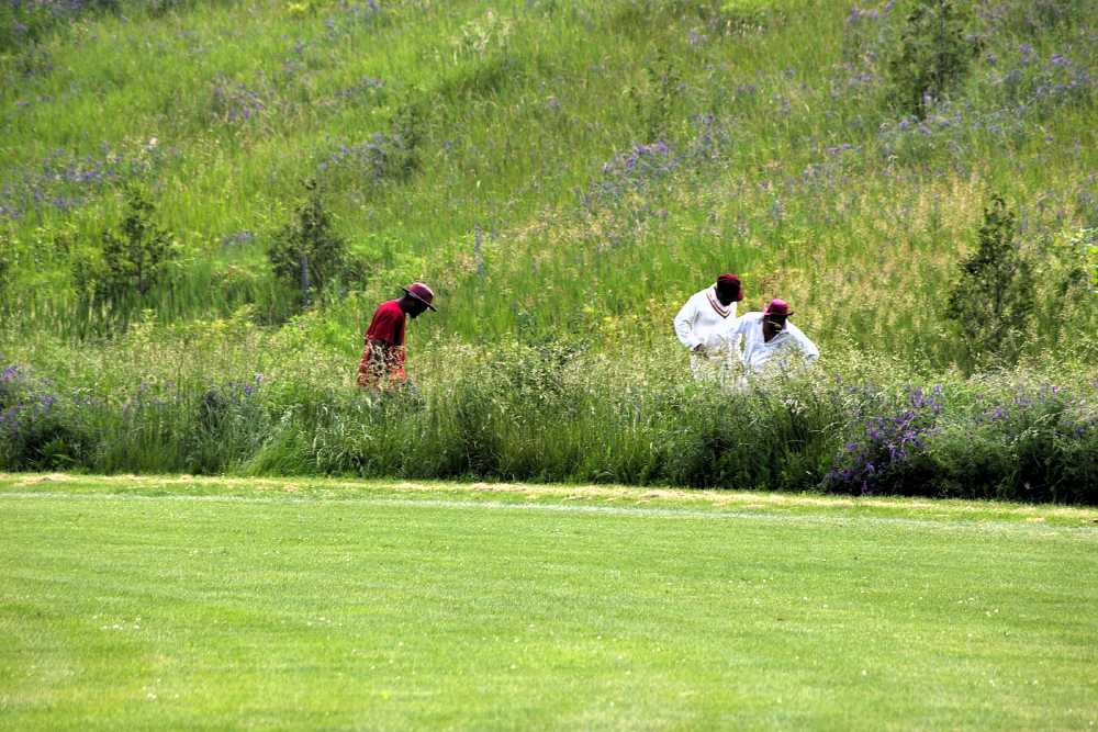 Silly Mid-off ploughed through the undergrowth to reach the west pitch at Eglinton Flats. Mississauga Ramblers were batting against Overseas in a Toronto & District Cricket Association Division 3 game.