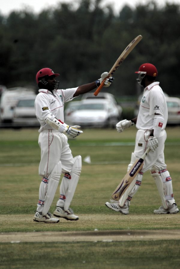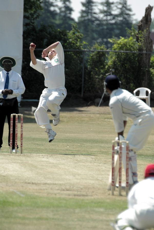 Limited preparation time was probably a factor in the early run out of Canadian opening bat, Geoff Barnett, when partner Shazhad Khan did not respond to Barnett’s call for a run. Khan was soon out, leg-before wicket, playing no stroke to a ball from Borren.